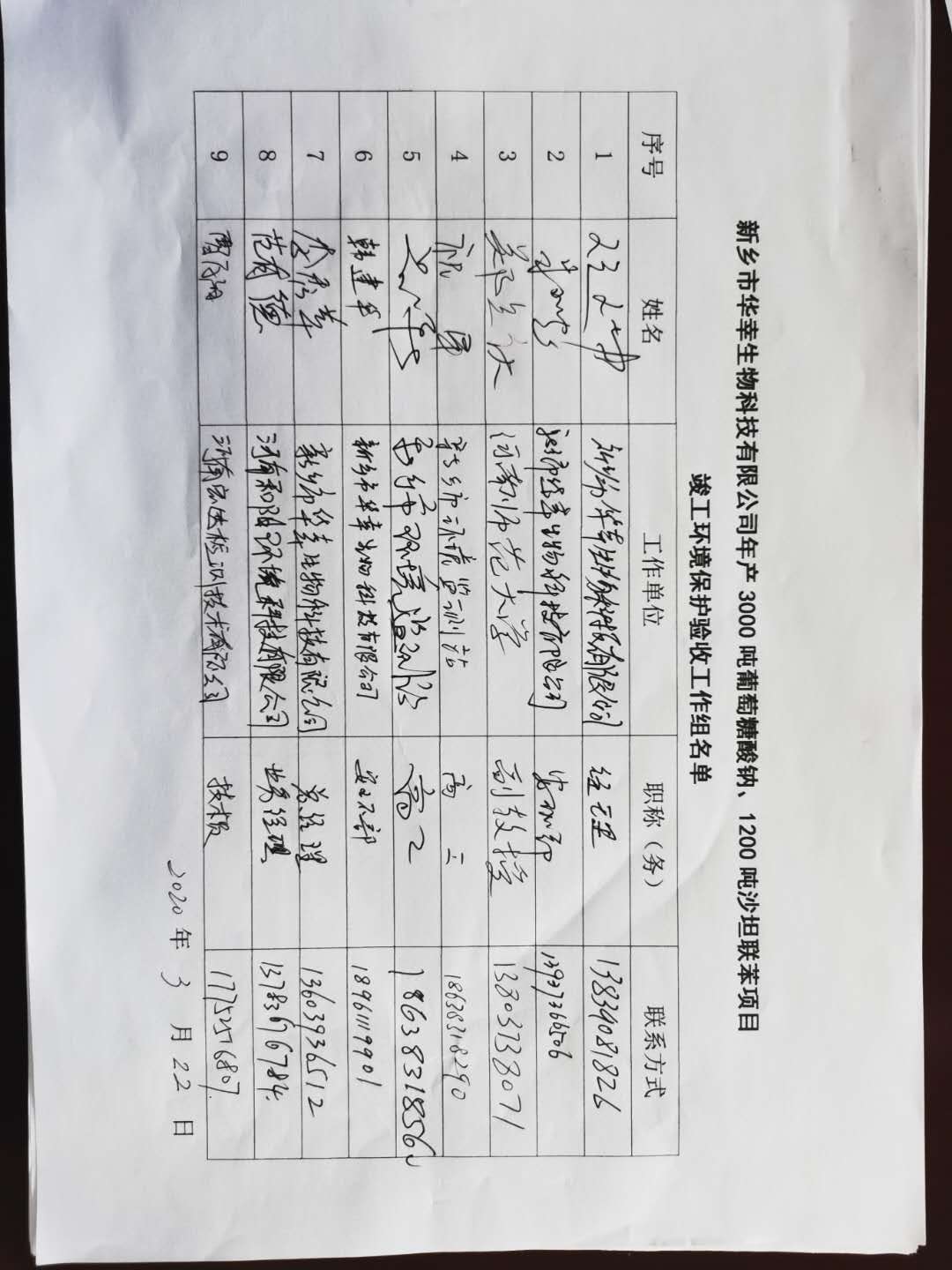 依據(jù)國(guó)務(wù)院第682號(hào)文頒布的新《建設(shè)項(xiàng)目環(huán)境保護(hù)管理?xiàng)l例》和原環(huán)境保護(hù)部國(guó)環(huán)規(guī)環(huán)評(píng)[2017]4號(hào)文公告的《建設(shè)項(xiàng)目竣工環(huán)境保護(hù)驗(yàn)收暫行辦法》的相關(guān)要求,新鄉(xiāng)市華幸生物科技有限公司于2020年1月20日在新鄉(xiāng)市華幸生物科技有限公司廠區(qū)召開(kāi)會(huì)議,對(duì)新鄉(xiāng)市華幸生物科技有限公司年產(chǎn)30000噸葡萄糖酸鈉、1200噸沙坦聯(lián)苯項(xiàng)目進(jìn)行竣工環(huán)境保護(hù)驗(yàn)收。會(huì)議成立了驗(yàn)收工作組,成員由建設(shè)單位新鄉(xiāng)市華幸生物科技有限公司、驗(yàn)收檢測(cè)單位河南和陽(yáng)環(huán)境科技有限公司、河南宏達(dá)檢測(cè)技術(shù)有限公司的代表及邀請(qǐng)的技術(shù)**組成(驗(yàn)收工作組名單附后)。會(huì)前,驗(yàn)收工作組成員對(duì)工程主要生產(chǎn)設(shè)施、環(huán)保設(shè)施進(jìn)行了現(xiàn)場(chǎng)檢查,會(huì)議聽(tīng)取了建設(shè)單位關(guān)于項(xiàng)目建設(shè)情況及竣工環(huán)保工作的情況介紹、竣工環(huán)保驗(yàn)收監(jiān)測(cè)報(bào)告編制單位關(guān)于驗(yàn)收監(jiān)測(cè)工作技術(shù)匯報(bào),查閱了竣工環(huán)保驗(yàn)收監(jiān)測(cè)報(bào)告,核實(shí)了有關(guān)資料。經(jīng)過(guò)認(rèn)真審議與討論,形成如下驗(yàn)收意見(jiàn):
